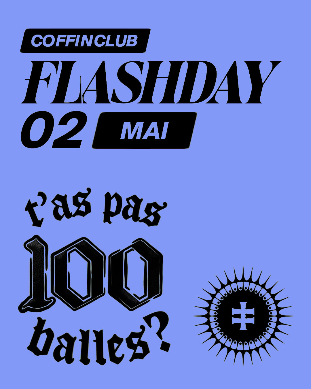 TATTOO // 11h-18h // tous les premiers samedis du mois avec l'équipe du Coffin Club à Lausanne - Des designs/tattoos à 100.- dispos uniquement lors de la flashday mensuelle. Pour cette édition de novembre, retrouve nos artistes pour plein de mini tatouages. On vous attend nombreux-ses le 1er novembre de 11h à 18h au Coffin Club de Lausanne.